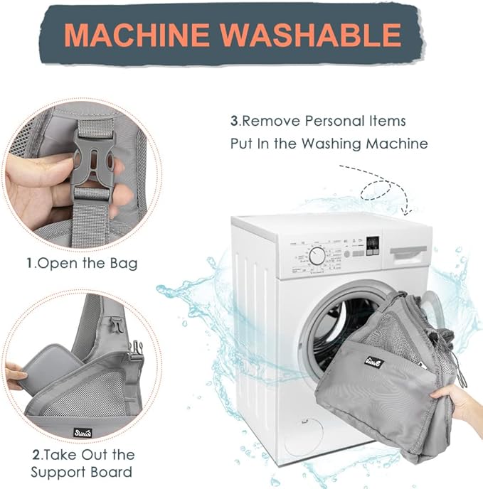 - 【Hard Removable Bottom & Durable Material】 - The Lukovee dog sling carrier features a detachable hard plate bottom, breathable mesh, and skin-friendly fabric. It is made of durable nylon, ensuring long-lasting use and preventing hair from sticking to it. (1).The sling is also machine washable after removing the detachable bottom.