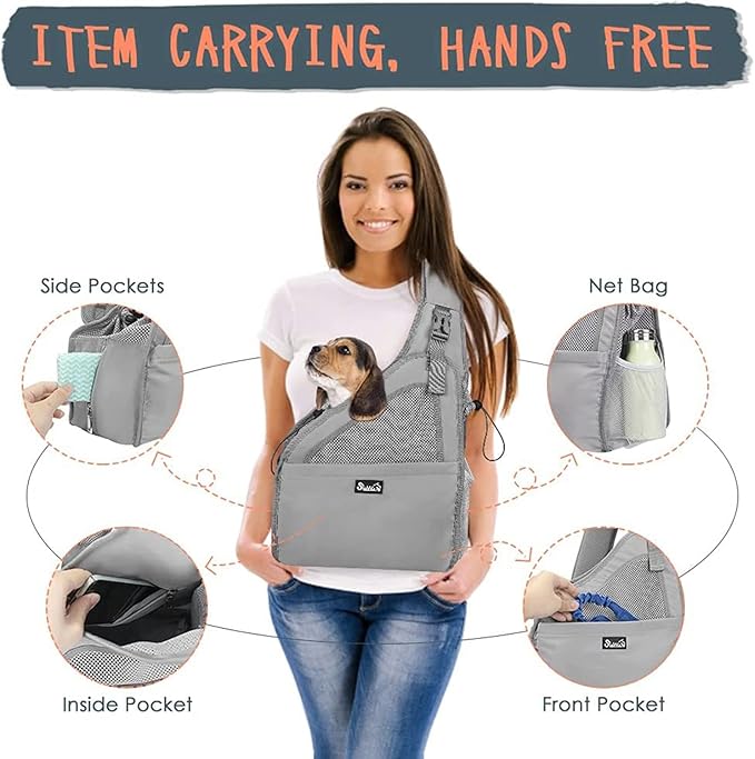 Lukovee Dog Slings for Small Dogs, Hard Bottom Support & Adjustable Soft Padded Shoudler Strap Dog Sling Carrier, Dog Purse with Button Closure & Zipper Pockets (for Pets up to 6 lbs, Grey)