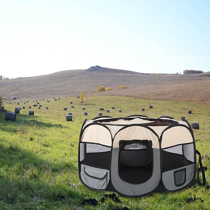 - Small Pop-Up Playpen Dog Cat Playpen Tent Size 29x29x16 Inch, Grey and Beige, 1 Pack Pet Playpen