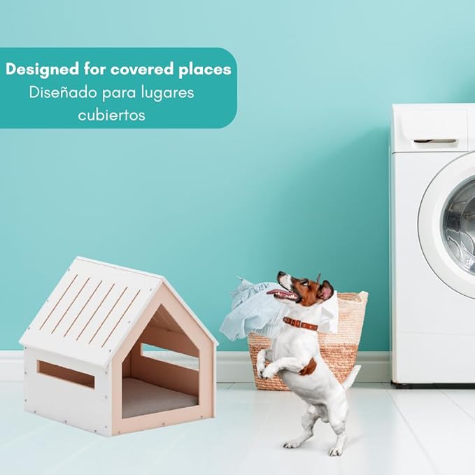 Big House for Pets, Wooden House for Pets for Interiors, Resistant Wood with Cushion for Dog Included, Minimalist, Elegant and Resistant, 24x25x24.5 in, Matte White