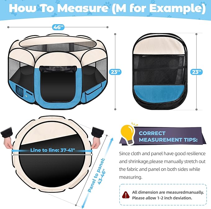 - 【Spacious & Comfort】:This dog playpen keeps your pet stay in this pet playpen secure, spacious interior give more fun for your pet. Size is 45*45*23 inches, great for small-medium animals up to 25 LB. There are 1-2 inch error range because of technical issue.