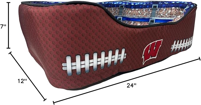NCAA Wisconsin Badgers Stadium Dog Bed, Pet Pillow Bed for Dogs, Sporty Football Dog Bed and Lounge Cushion