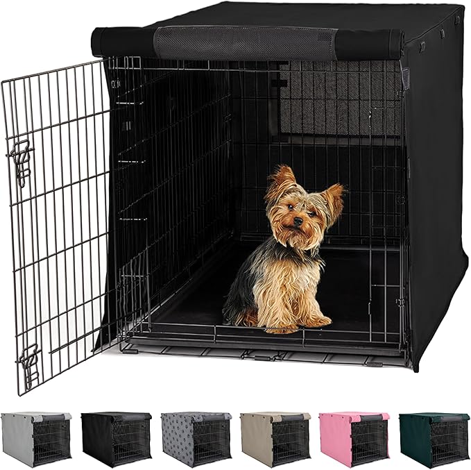 GORILLA GRIP Dog Crate Covers Compatible with Amazon Basics Dog Crates, All Sides Open, Privacy Cover Fits 24" Wire Kennel, Breathable Mesh Windows, Light Reducing Puppy Training Cage Topper, Black