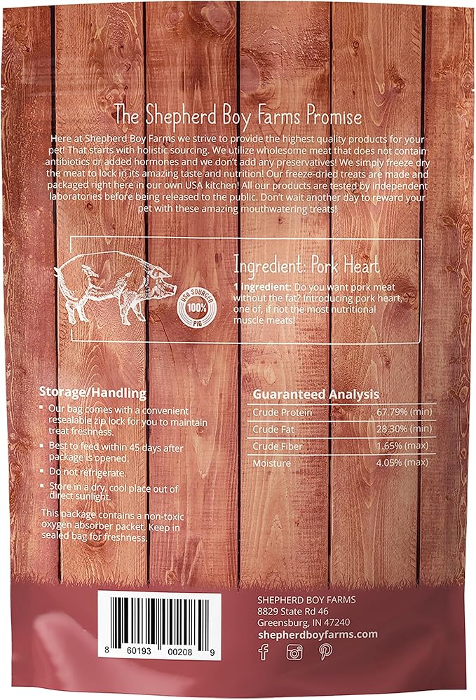 Freeze Dried Dog and Cat Treats, Pork Heart, All Natural Single Ingredient Freeze-Dried Dog Treat & Dog Snacks, Made in USA, High Protein, Essential Nutrition of Raw Dog Food, 3oz
