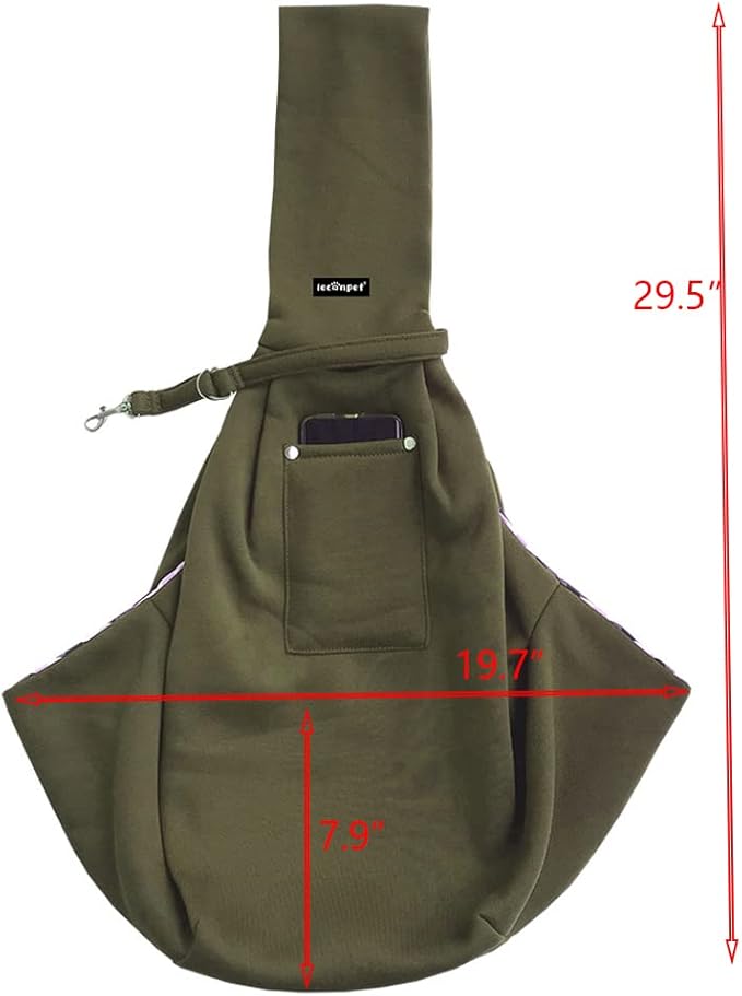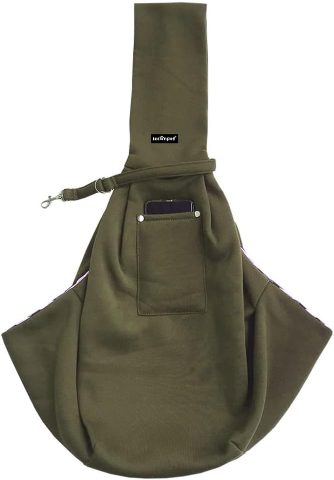 Leconpet Dog Sling Carrier Shoulder Bag for Pets with Mobile Phone Pocket Safety Buckle Security Lock, Suitable for Puppy, Small Dogs, and Cats for Outdoor Travel (Olive Green)