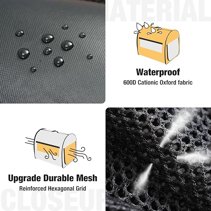 - Material : Waterproof Base Layer, Mesh Fabric, 600D Cationic Oxford