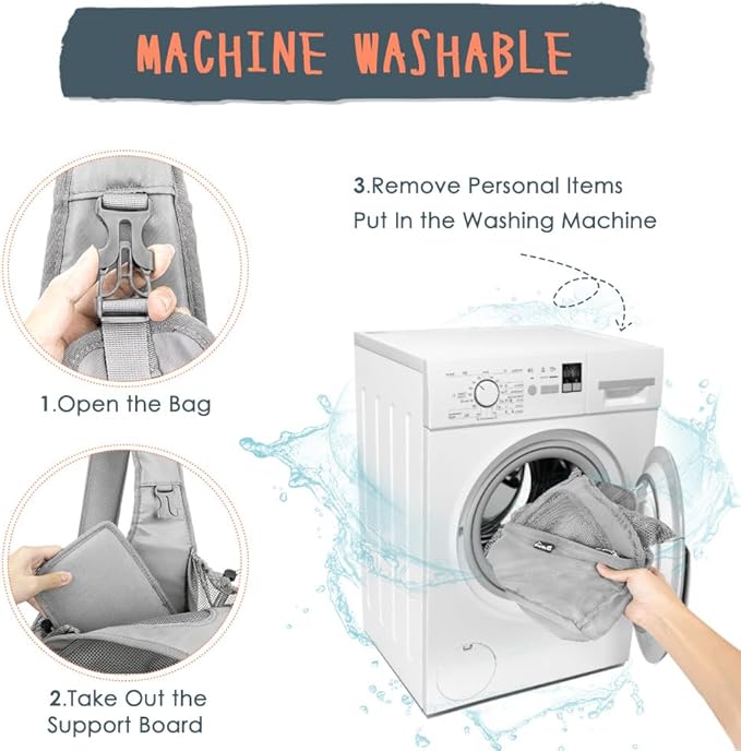 - Safe and Comfortable for Pets --- SlowTon dog sling is equipped with a detachable hard plate bottom, plus the breathable mesh and the skin friendly fabric, which make sure your pet stay comfort inside. The adjustable safety hook inside the bag can be linked to pet’s collar or harness, preventing pet jumping out accidentally