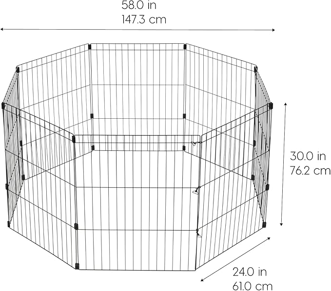 IRIS USA Metal Dog Playpen, 8-Panel 30" Pet Playpen, Puppy Playpen, Indoor/Outdoor Dog Fence, 58 x 58 x 30, Foldable, Customizable, Black