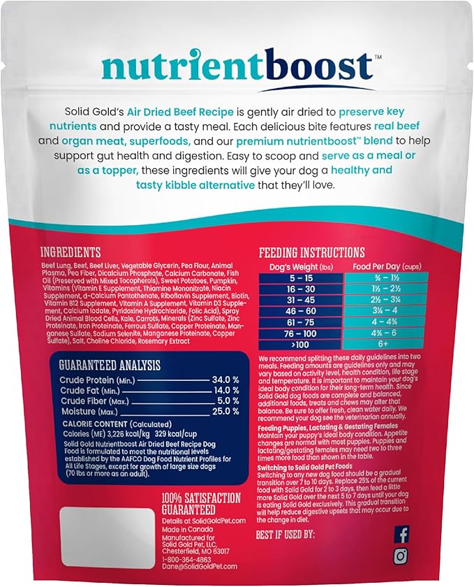 - Gently Air Dried & Craveably Delicious! - Solid Gold Air Dried dog food flavor topper recipe is a dog meal topper, dog treat, freeze-dried/kibble alternative made with high protein that is gently air dried to preserve nutrients and flavor