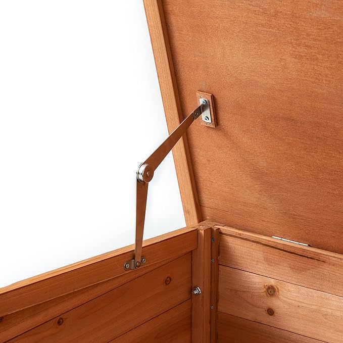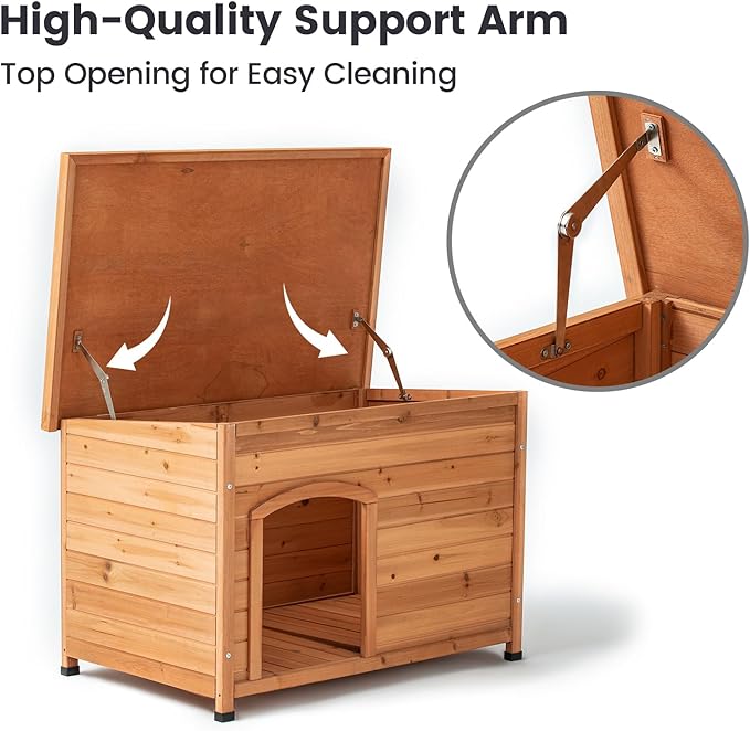 - 【Easy to clean】:The roof of the doghouse can be lifted and equipped with metal braces. The roof of the dog house can be dismantled at any time, making it convenient for you to clean and ventilate the dog house.