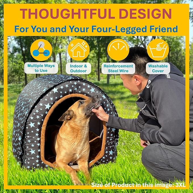 2 in 1 Extra Large Pet Winter House Convertible to Bed with Warm Cushion Mat, 2 Way Indoor Outdoor Portable Dog Kennel, Removable Washable Cover (2XL Starry Sky)
