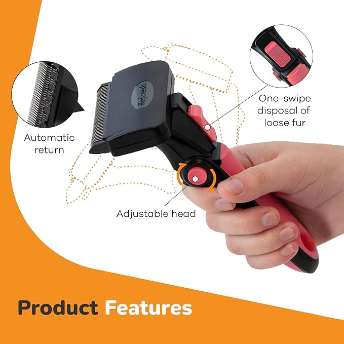 Deshedding Brush for Dogs & Cats - Medium & Pink, Long Hair Grooming Tool, Dog Deshedding Brush, Cat Deshedding Brush, Lightweight Deshedding Tool for Shedding Control. Pet Deshedder