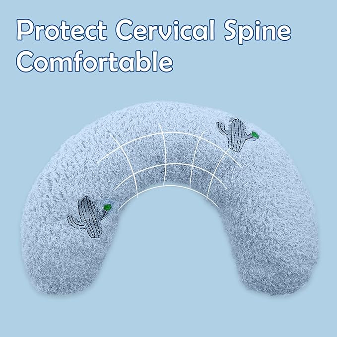 T'CHAQUE Dog Pillow Bed, Cat Calming Pillow, Dog Neck Pillow for Joint Relief Sleeping, Ultra Soft Half Donut Cuddler, Pillow Pet for Upper Spine Support, Doggy/Kitten Pillow Training Toy, BlueCactus