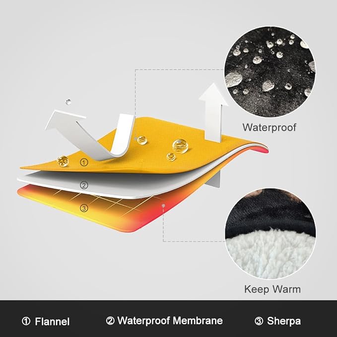 - 🔥 Warm & Cozy Comfort: Our thick dog blanket features a luxurious Sherpa lining on one side and soft flannel fleece on the other, ensuring your pets stay warm and comfortable in any weather. The waterproof inner layer effectively blocks humidity and cold, making it the perfect waterproof blanket for dogs on chilly nights!