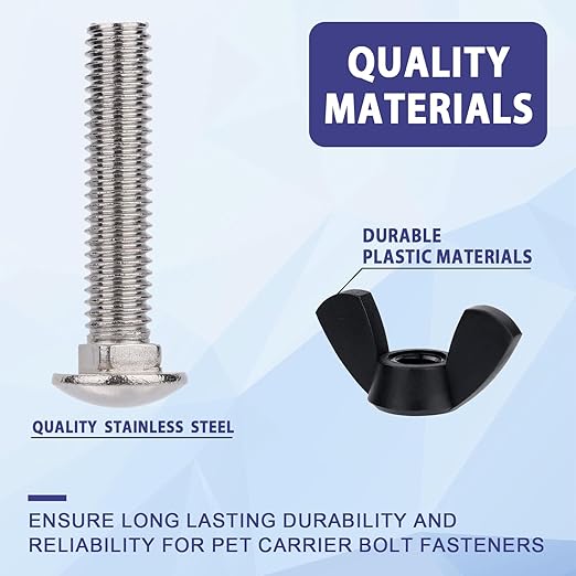 - Package Content: You will receive 12 pieces of M6 stainless steel kennel replacement bolts and 12 pieces of plastic pet carrier nuts, sufficient quantity can meet your needs and can be used to strengthen and repair the pet crate.
