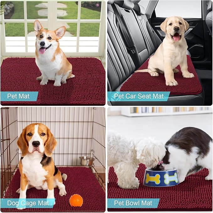 OLANLY Dog Door Mat for Muddy Paws 36x24, Absorbs Moisture and Dirt, Absorbent Non-Slip Washable Mat, Quick Dry Chenille, Mud Mat for Dogs, Entry Indoor Door Mat for Inside Floor, Burgundy