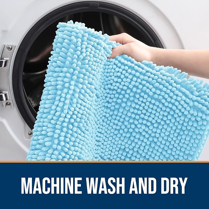 OLANLY Dog Door Mat for Muddy Paws 48x30, Absorbs Moisture and Dirt, Absorbent Non-Slip Washable Mat, Quick Dry Chenille, Mud Mat for Dogs, Entry Indoor Door Mat for Inside Floor, Blue