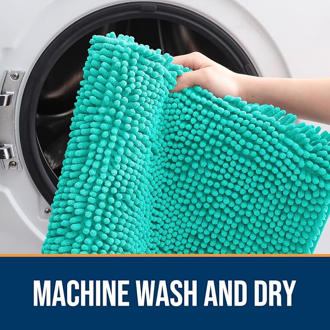 OLANLY Dog Door Mat for Muddy Paws 30x20, Absorbs Moisture and Dirt, Absorbent Non-Slip Washable Mat, Quick Dry Chenille, Mud Mat for Dogs, Entry Indoor Door Mat for Inside Floor, Teal