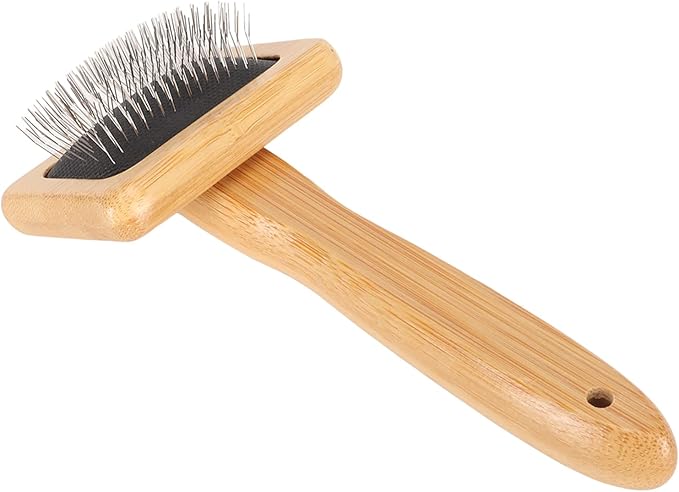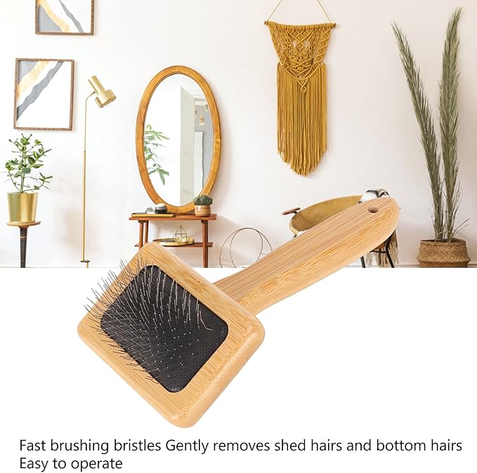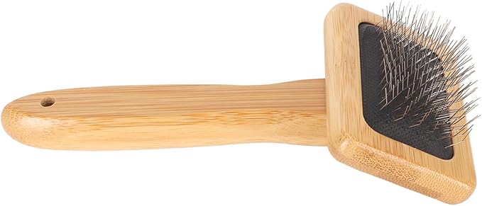 - 【Reliable Material】Composed of flexible stainless steel needles and liners, the wool carding brush is softly resilient when brushing and are not easily worn or broken. The handle of the grooming comb is made of bamboo material, finely polished with smoothly curves.