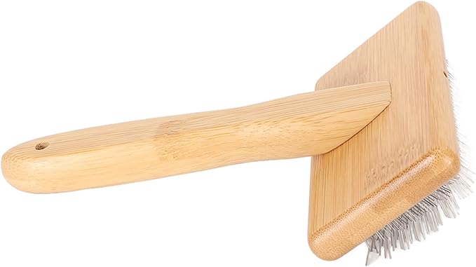 - 【Reliable Material】Composed of flexible stainless steel needles and liners, the wool carding brush is softly resilient when brushing and are not easily worn or broken. The handle of the grooming comb is made of bamboo material, finely polished with smoothly curves.