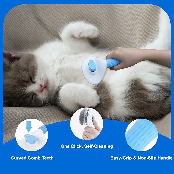 - ๐พ [Full Set of Dog/Cat Brushes] This comprehensive set of grooming brushes covers all your pet's daily care needs. A must-have for every pet family, especially when welcoming a new puppy. Designed with delightful blue sky and pink cherry styles, it also makes for a fantastic gift choice. Surprise your Fur Friends with the care they deserve!