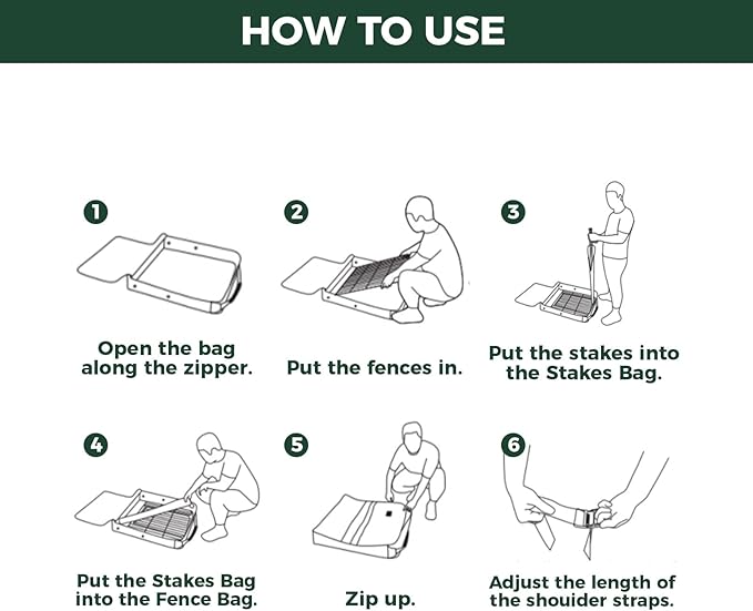 - Increasing Comfort and Reducing Stress During Long-Distance Transportation: The shoulder strap adopts a widened and length-adjustable design, combined with a detachable shoulder pad, to improve the comfort for the customer carrying the fence. A thickened EVA cotton-padded handle is located in the middle of the front of the storage bag to make it easier for customers to carry the fence to the RV.