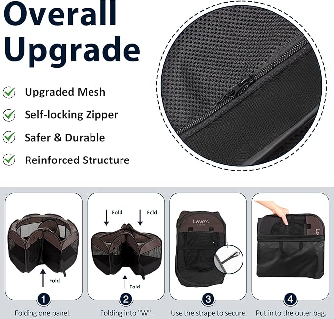 - No Assembly Required and Easy to Store: The Portable Pet Play Pen comes along with a convenient carrying case that can easily store your playpen. It takes seconds to open the dog playpen from folded storage bag, no assembly required. And it's also easy to fold back flat when not in use. Our lightweight portable pet playpen can be used indoors, outdoors, traveling, camping, etc.