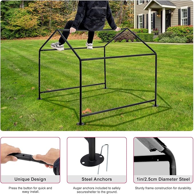 - 🐕🐾 Durable And Sturdy: The dog shelter frame is constructed of high-quality 1" steel and features a premium powder coat finish that protects the dos shade from corrosion, and rust. This ensures that the dog canopy is sturdy enough to withstand any outdoor conditions and will last for years to come.