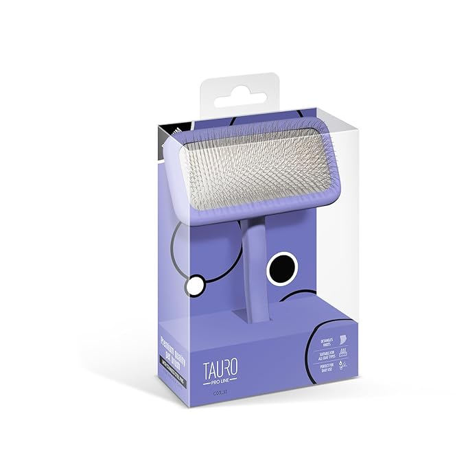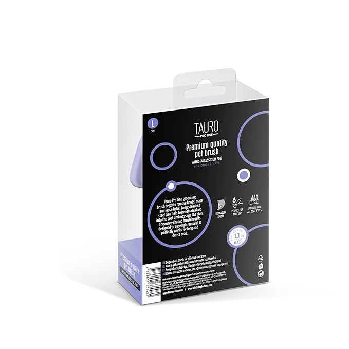 - COAT CARE - The Tauro Proline grooming brush ensures easy grooming for both dogs and cats, thanks to its soft and flexible cushion. The stainless steel teeth glide gently through both short and long hair coats, ensuring a pain-free grooming session every time.