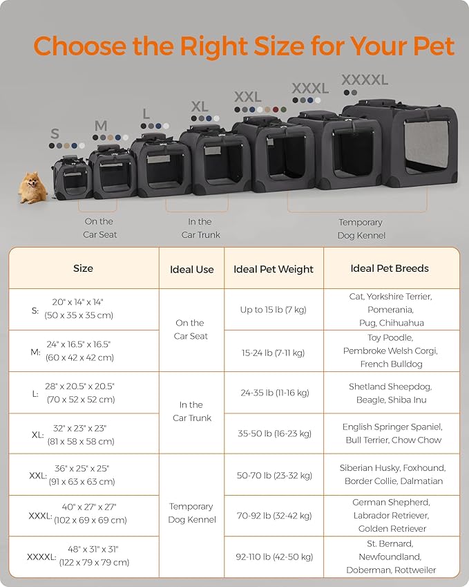 - 【ANTI-ESCAPE & STRONGER】Featuring self-locking zippers that ensure pets can't open it from the inside, the travel dog crate enhances safety while traveling. The thick steel frame and Oxford fabric are scratch- and tear-resistant for prolonged service life