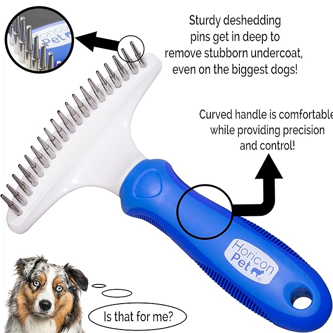 - Our Deshedding Edge Comb straightens the coat and removes light tangles. The sturdy stainless steel pins can even get into the thick areas some breeds have around the legs and chest.