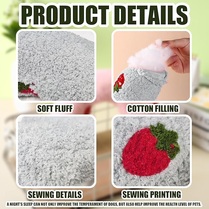 - 【Soft and Lovely Design】This cutated dog calming pillow is embroidered with strawberry patterns which looks very cute. And the soft touch and bright color of our calming pet pillow will definitely make your pet love it so much.