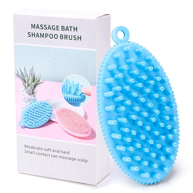 ROPO Dog Shampoo Brush, Dog Bath Brush & Dogs Shower, Dog Hand Brush for Grooming, Dog Scrubber for Bath, Dog Wash Brush (Blue)