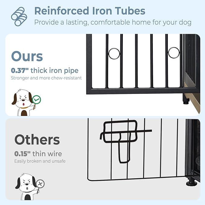 - 【Sturdy and Chew-Resistant】This dog crate furniture for 2 dogs is made of premium particle board and iron pipe, which is stronger and more chewy, it will accompany your dog throughout the growing stages
