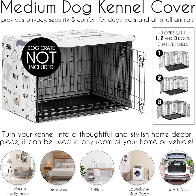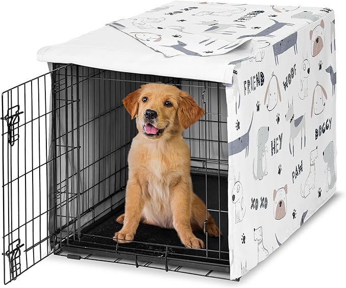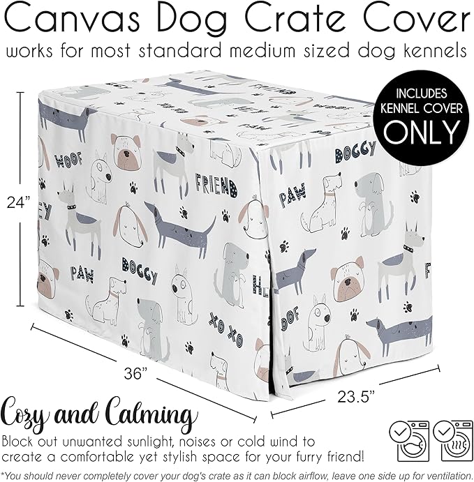 - This durable and stylish dog crate cover is the best way create a comfortable and cozy space for your four legged friend with a protective canvas fabric that securely covers the top of your pets cage for a dark and tranquil crate at all times. Give your puppy a space where they can rest and relax after a long day of playing or secure flaps with our hook and loop closure design to allow your pet to enter and exit as they please.