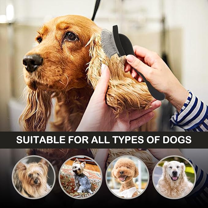 Black Slicker Brush for Goldendoodles, Labradoodles, Poodles - Grooming Kit for Medium & Long Haired Dogs
