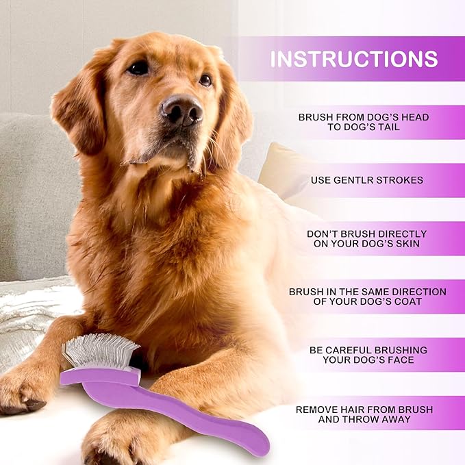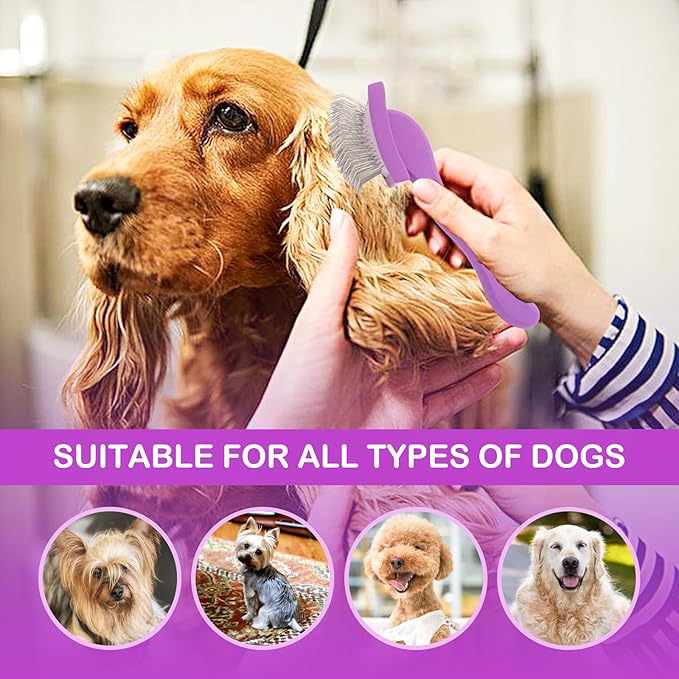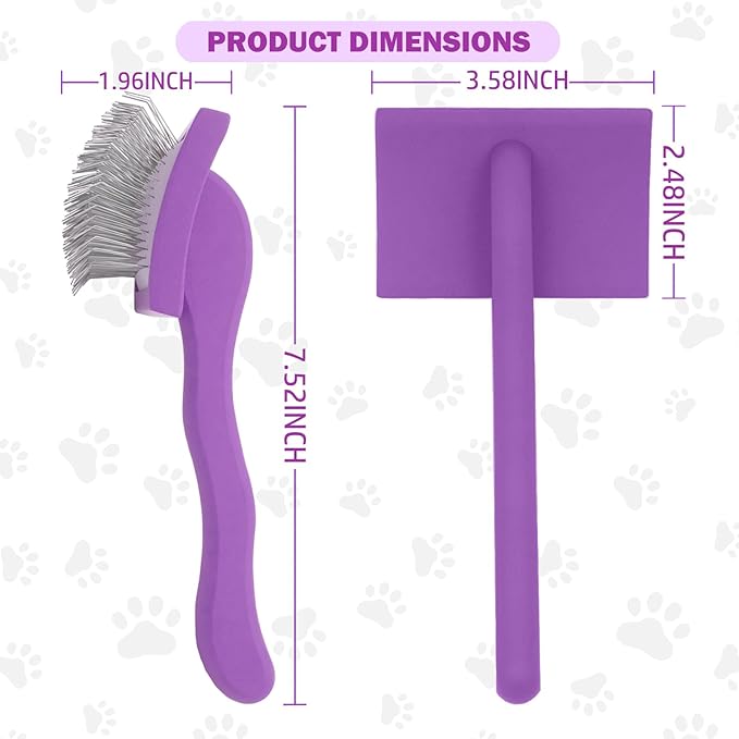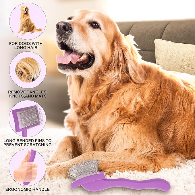 Slicker Brush for Goldendoodles, Labradoodles & Poodles - Grooming Kit for Medium & Long Haired Dogs (Purple)