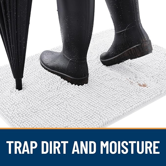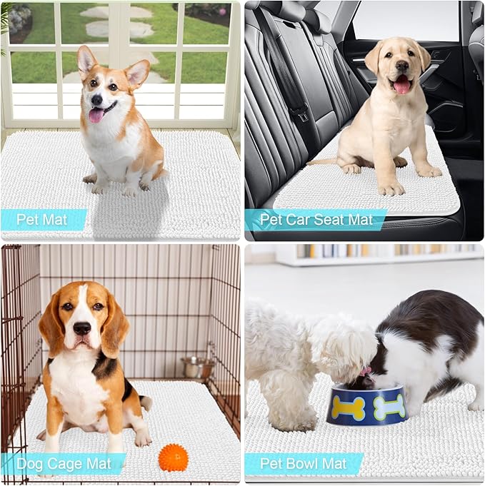 OLANLY Dog Door Mat for Muddy Paws 36x24, Absorbs Moisture and Dirt, Absorbent Non-Slip Washable Mat, Quick Dry Chenille, Mud Mat for Dogs, Entry Indoor Door Mat for Inside Floor, White