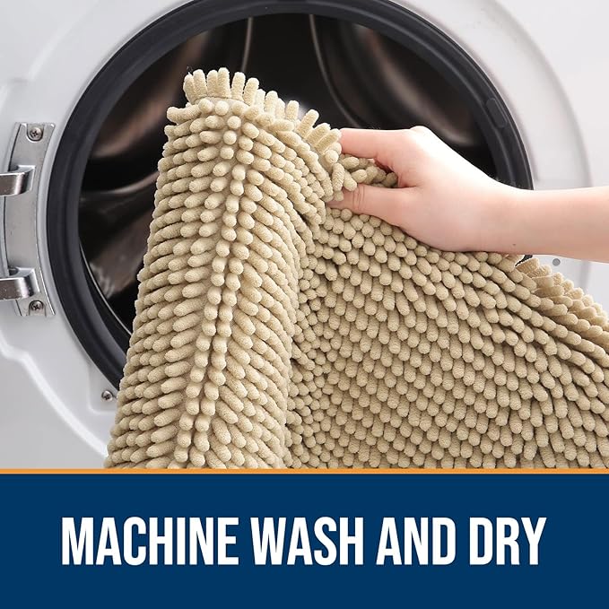 OLANLY Dog Door Mat for Muddy Paws 59x35, Absorbs Moisture and Dirt, Absorbent Non-Slip Washable Mat, Quick Dry Chenille, Mud Mat for Dogs, Entry Indoor Door Mat for Inside Floor, Beige