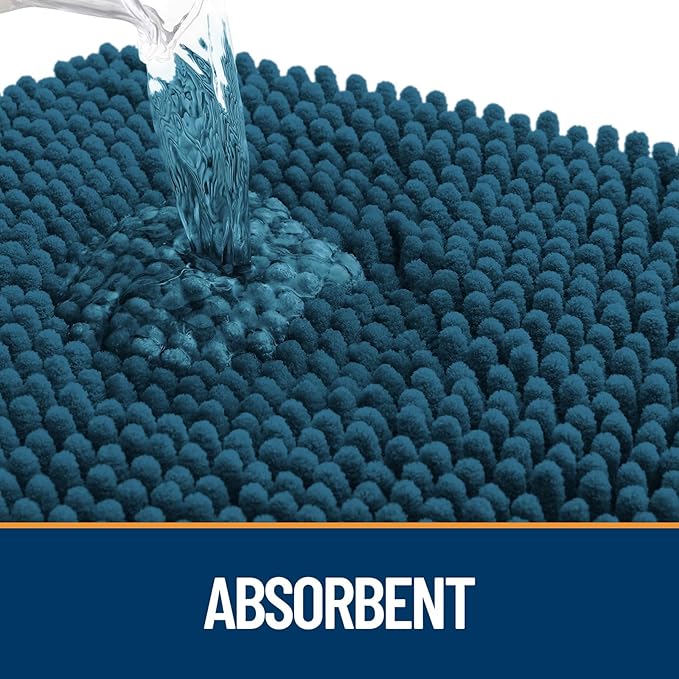 OLANLY Dog Door Mat for Muddy Paws 24x16, Absorbs Moisture and Dirt, Absorbent Non-Slip Washable Mat, Quick Dry Chenille, Mud Mat for Dogs, Entry Indoor Door Mat for Inside Floor, Atlantic Blue