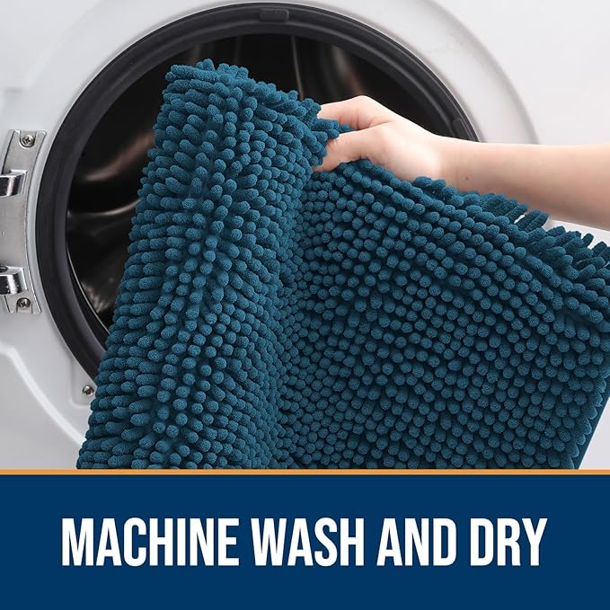 OLANLY Dog Door Mat for Muddy Paws 30x20, Absorbs Moisture and Dirt, Absorbent Non-Slip Washable Mat, Quick Dry Chenille, Mud Mat for Dogs, Entry Indoor Door Mat for Inside Floor, Atlantic Blue