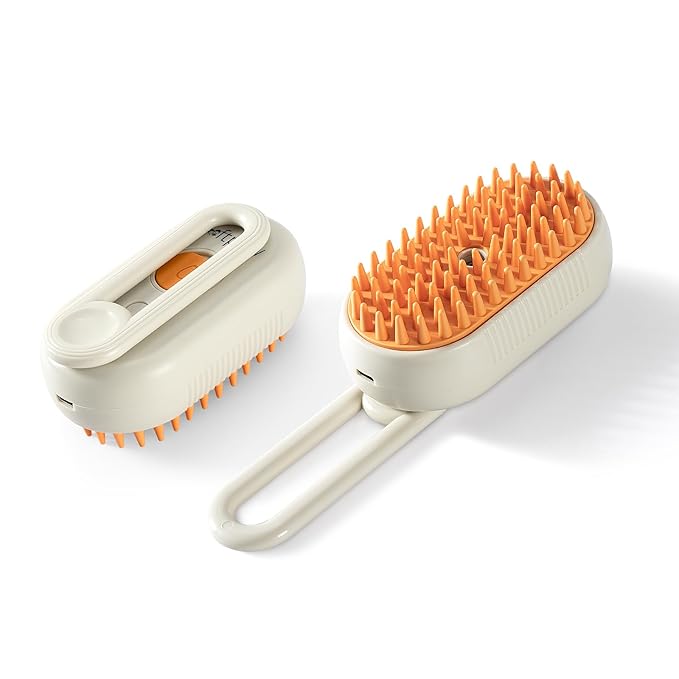 | Pet Steam Mist Brush | Grooming Spray Brush for Dogs, Cats, and More! | Brush for Massage | Hair Brush for Removing Tangled and Loose Hair (Orange)
