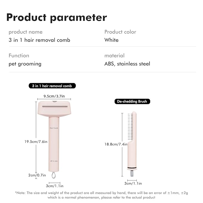 3 In 1 Pet Dematting Tool, Dog Flea Lice Combs for Grooming, Undercoat Rake & Dematting Comb for Detangling Matted or Knotted Undercoat Hair, Great for Short or Long-haired Dogs & Cats - Pink