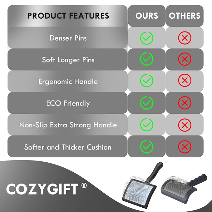 - [100% Guarantee] This slicker brush is well-priced and designed for your convenience. Keep one at home and another in the car for easy grooming on the go. It’s also a thoughtful gift for family, friends, and colleagues—COZYGIFT dog grooming brush is a sweet choice for pet lovers.
