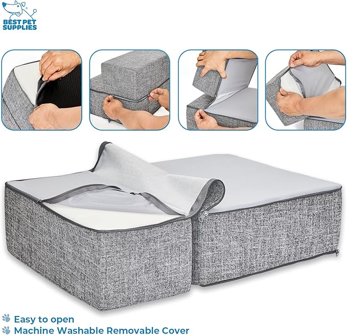 Best Pet Supplies Portable Foldable Foam Pet Stairs/Steps for Couch, Sofa, and High Bed, Non-Slip Bottom Balanced Paw Safe - Gray Linen, Foldable 2-Step (H: 12")