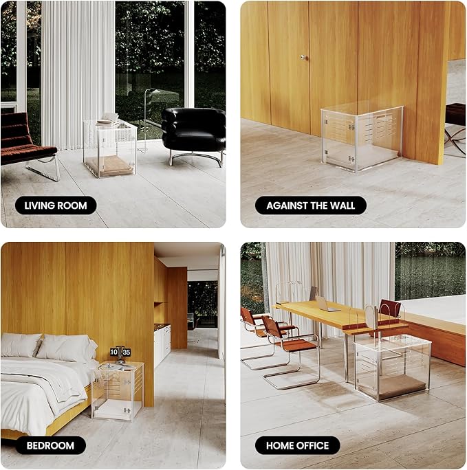 - 【Multi-functional Furniture】 - Say goodbye to traditional dog crates, Sumerflos acrylic dog crate is stylish and functional. It can be used as end table, side table, bedside table, night stand. Transparent appearance will match your home decor better without making your room heavy.