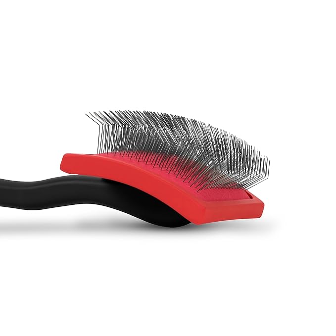 - COMFORT & SAFETY - Angled, extra-long sturdy stainless steel pins penetrate coats with ease. Cushioned rubber pad provides comfortable experience for pets.
