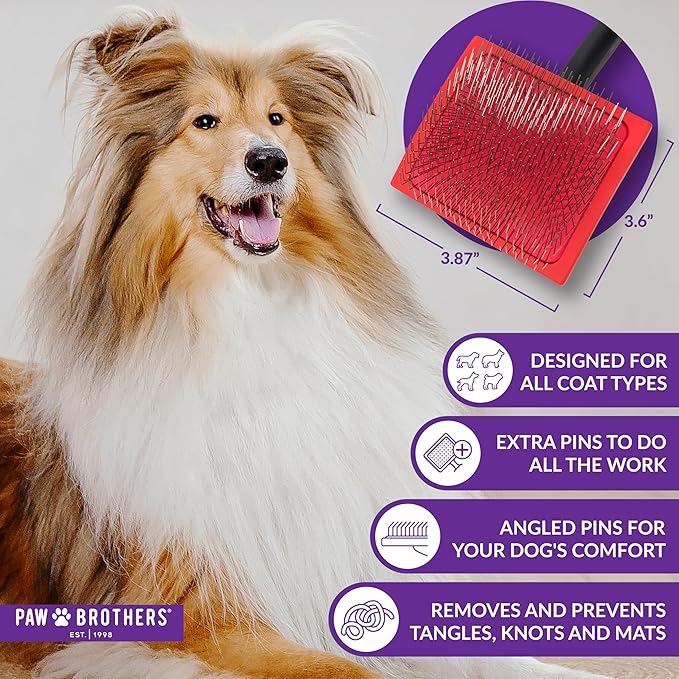 Paw Brothers Big Paw Slicker Brush for Long and Short Haired Dogs - Ideal for Doodles, Goldendoodles, Poodles, Long Pin Grooming