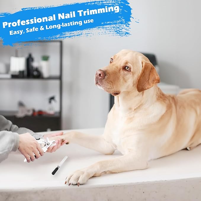 - 🐶【2PCS Nail Tools】nail clipper & nail file. This dog nail trimmers can easily trim thick nails of small, medium and large dogs. There is a safety guard stopper to prevent excessive trimming and damage to the nail bloodline. After clipping, you can use the nail file to polish your dog's toenails