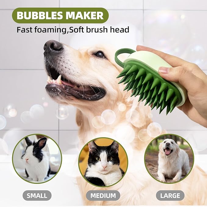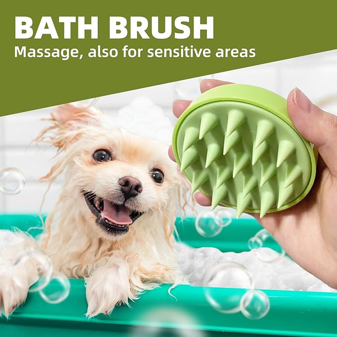 - Quick Lathering & Massage Cleansing.Thorough cleansing and massage.Made of high quality rubber material, 2 dog scrubber shampoo shower bath brushes are soft & gentle, able to lather quickly for deeper cleaning. Provides a nice soothing massage during dry brushing and bathing, helping to keep skin and coat healthy. One Dog bath brush with a perfect adjustable loop handle that comfortably fits different sized hands, firmly fixed between the palms.The other one dog bath brush can be held freely.